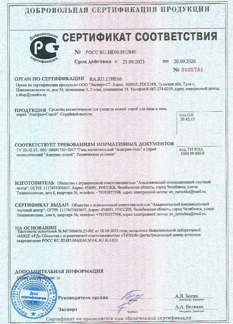 Ацеграм не имеет побочных эффектов при применении. Попробуйте средство прямо сейчас, активируйте природное совершенство и способности Вашего организма к исцелению.